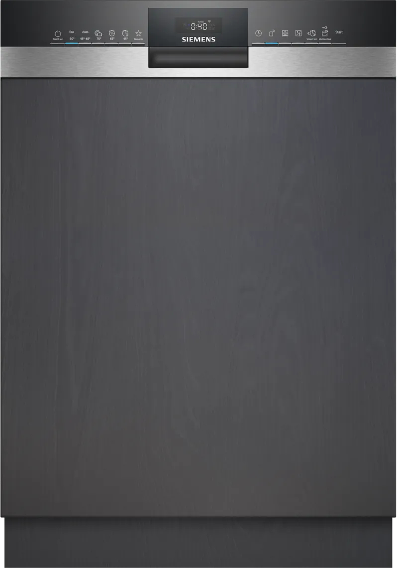 Siemens iQ300 SN53ES04TE. Apparaatplaatsing: Semi-ingebouwd, Productafmeting: Volledige grootte (60 cm), Kleur bedieningspaneel: Zwart. Aantal couverts: 13 couverts, Geluidsemissieklasse: B, Geluidsniveau: 44 dB. Voetenverstelling: 6 cm, Bedieningsapps ondersteund: Home Connect. Energie-efficiëntieklasse: B, Waterconsumptie per cyclus: 9 l, Energieverbruik per 100 cycli: 64 kWu. Breedte: 598 mm, Diepte: 573 mm, Hoogte: 815 mm