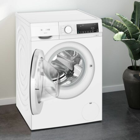De Siemens WG44G005NL wast tot 65% sneller dankzij varioSpeed. Met deze functie kort je verschillende wasprogramma’s in. Je kiest een programma voor bijvoorbeeld katoen of fijne was. Zet de wasmachine gerust aan wanneer je televisie kijkt. Door de koolborstelloze iQdrive motor heb je weinig last van lawaai. Je doet met 9 kilogram vulgewicht veel was in één keer. Hiermee is de trommel ruim genoeg voor het beddengoed van een groot of klein huishouden. Door de iSensoric sensoren gebruik je niet meer water en energie dan nodig is. De wasmachine past het programma aan op de belading in de trommel. Je wast met energieklasse A zeer energiezuinig schoon. Over de levensduur bespaar je gemiddeld tot € 290,- op je energierekening.