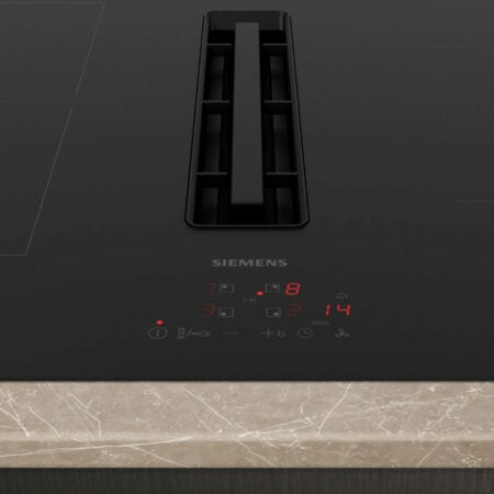 Siemens iQ500 ED811BS16E. Kleur van het product: Zwart, Apparaatplaatsing: Ingebouwd, Breedte kookplaat: 80 cm. Soort bediening: Touch, Controle positie: Boven voorzijde, Type timer: Digitaal. Afzuigmethode: Afvoerend/recirculerend, Maximale afzuigcapaciteit: 622 m³/uur, Geluidsniveau: 69 dB. Aangesloten lading (elektrisch): 7400 W, Energie-efficiëntieschaal: A+++ tot D, AC-ingangsspanning: 220-240/380-415 V. Breedte: 802 mm, Diepte: 522 mm, Hoogte: 223 mm