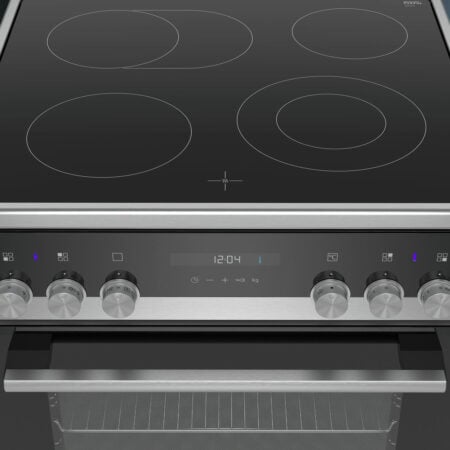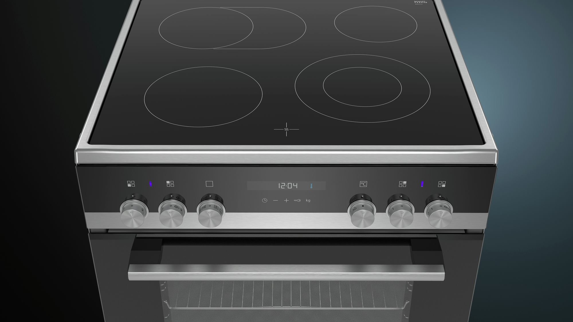 Siemens iQ500 HK9S5A240. Type product: Vrijstaand fornuis, Kleur van het product: Zwart, Soort bediening: Draaiknop, Touch. Type kookplaat: Keramisch, Aantal branders/kookzones: 4 zone(s), Aantal elektronische kook zones: 4 zone(s). Grootte oven: Middelmaat, Voedingsbron oven: Electrisch, Netto capaciteit oven: 66 l. Type oventimer: Digitaal. Energieverbruik (conventioneel): 0,98 kWu, Energieverbruik (geforceerde convectie): 0,79 kWu, Aangesloten lading (elektrisch): 10900 W