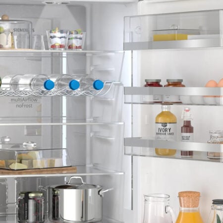 Siemens iQ500 KG39NAIAT. Totale nettocapaciteit: 363 l. Deurscharnieren: Rechts, Type beeldscherm: LED. Klimaatklasse: SN-T, Geluidsniveau: 29 dB. Nettocapaciteit koelkast: 260 l, No Frost (koelkast), Koelkast binnenverlichting, Aantal planken koelkast: 5. Nettocapaciteit vriezer: 103 l, Vriescapaciteit: 11 kg/24u. Vers zone compartiment. Energie-efficiëntieklasse: A, Jaarlijks energieverbruik: 104 kWu. Kleur van het product: Roestvrijstaal