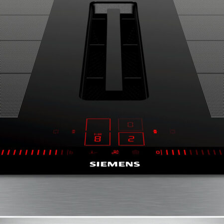 Siemens iQ700 EX875LX67E. Kleur van het product: Zwart, Roestvrijstaal, Apparaatplaatsing: Ingebouwd, Breedte kookplaat: 80 cm. Normale brander/kookzone: 2200 W, Versterken van normale pit/kookplaat: 3700 W, Certificering: CE, VDE. Soort bediening: Touch, Controle positie: Boven voorzijde, Type timer: Digitaal. Afzuigmethode: Afvoerend/recirculerend, Maximale afzuigcapaciteit: 622 m³/uur, Geluidsniveau: 69 dB. Aangesloten lading (elektrisch): 7400 W, AC-ingangsspanning: 220 – 240 V, AC-ingangsfrequentie: 50 – 60 Hz