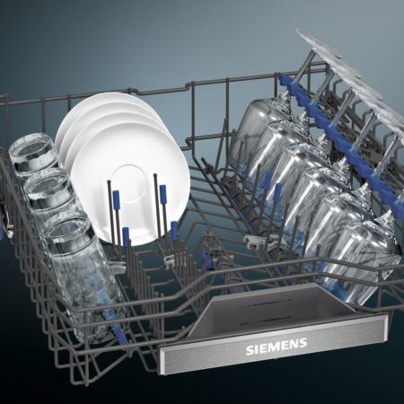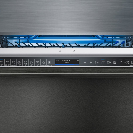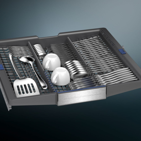 Siemens iQ700 SN97T800CE. Apparaatplaatsing: Volledig ingebouwd, Productafmeting: Volledige grootte (60 cm), Soort bediening: Touch. Aantal couverts: 14 couverts, Geluidsemissieklasse: B, Geluidsniveau: 43 dB. Voetenverstelling: 6 cm. Energie-efficiëntieklasse: A, Waterconsumptie per cyclus: 9,5 l, Energieverbruik per 100 cycli: 54 kWu. Breedte: 598 mm, Diepte: 550 mm, Hoogte: 815 mm