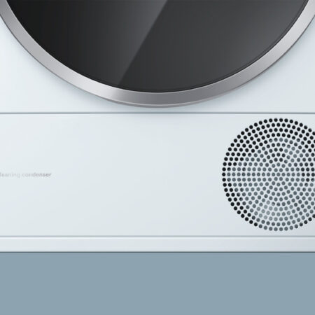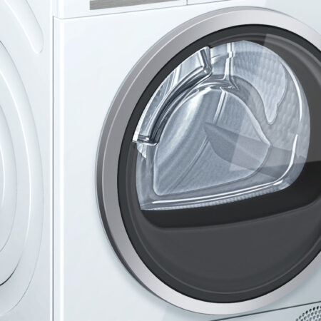 Siemens WT47W5W0, Vrijstaand, Voorbelading, Warmtepomp, Wit, Draaiknop, Touch, Rechts