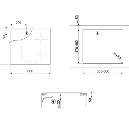 Smeg Cucina SI264DM. Kleur van het product: Zwart, Apparaatplaatsing: Ingebouwd, Type kookplaat: Inductiekookplaat zones. Sudder brander/kookzone: 2300 W, Normale brander/kookzone: 1300 W, Grote brander/kookzone: 2300 W. Soort bediening: Draaiknop, Controle positie: Boven voorzijde. Aangesloten lading (elektrisch): 7400 W, Beperkt aangesloten belastingen ondersteund: 2600,3000,3800,4500 W, AC-ingangsspanning: 220-240 V. Breedte: 596 mm, Diepte: 510 mm, Hoogte: 60 mm