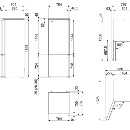 Smeg FA3905LX5. Totale nettocapaciteit: 481 l. Deurscharnieren: Links. Klimaatklasse: SN-T, Geluidsniveau: 41 dB. Nettocapaciteit koelkast: 344 l, No Frost (koelkast), Multi-luchtwegsysteem (koelkast), Koelkast binnenverlichting. Nettocapaciteit vriezer: 137 l, Vriescapaciteit: 8 kg/24u, No Frost (vriezer). Vers zone compartiment. Energie-efficiëntieklasse: E, Jaarlijks energieverbruik: 285 kWu. Kleur van het product: Roestvrijstaal