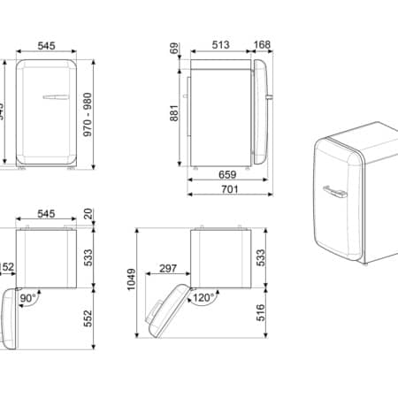 Smeg FAB10LCR5. Apparaatplaatsing: Vrijstaand, Kleur van het product: Crème, Deurscharnieren: Links. Totale nettocapaciteit: 122 l, Klimaatklasse: SN-T, Geluidsemissieklasse: C. Nettocapaciteit koelkast: 104,8 l, Soort lamp: LED. Vriezer positie: Boven, Nettocapaciteit vriezer: 17 l, Vriescapaciteit: 2,58 kg/24u. Snoerlengte: 1,7 m