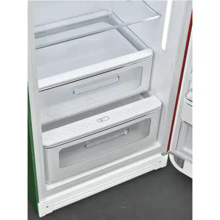 Smeg FAB28RDIT5. Apparaatplaatsing: Vrijstaand, Kleur van het product: Groen, Rood, Wit, Deurscharnieren: Rechts. Totale nettocapaciteit: 270 l, Klimaatklasse: SN-T, Geluidsemissieklasse: B. Nettocapaciteit koelkast: 244 l, Soort lamp: LED, Vers zone compartiment netto capaciteit: 244 l. Vriezer positie: Boven, Nettocapaciteit vriezer: 26 l, Vriescapaciteit: 2 kg/24u. Snoerlengte: 1,8 m
