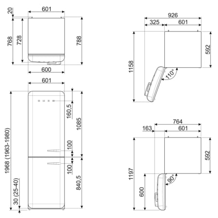 Smeg FAB32RPB5. Totale nettocapaciteit: 331 l. Deurscharnieren: Rechts, Type beeldscherm: LED. Klimaatklasse: ST-T, Geluidsniveau: 37 dB. Nettocapaciteit koelkast: 204 l, No Frost (koelkast), Multi-luchtwegsysteem (koelkast), Koelkast binnenverlichting. Nettocapaciteit vriezer: 97 l, Vriescapaciteit: 6 kg/24u, No Frost (vriezer). Energie-efficiëntieklasse: D, Jaarlijks energieverbruik: 178 kWu. Kleur van het product: Blauw