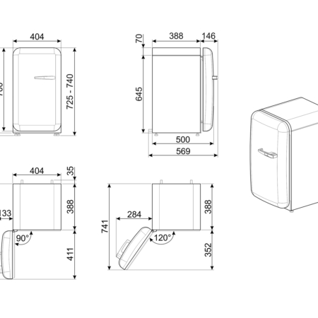 Smeg FAB5LPK5. Nettocapaciteit koelkast: 34 l, Klimaatklasse: SN-T, Geluidsniveau: 40 dB. Aantal planken koelkast: 2. Soort lamp: LED. Deurscharnieren: Links. Jaarlijks energieverbruik: 61 kWu, Energie-efficiëntieklasse: D. Gewicht: 21 kg. Kleur van het product: Roze
