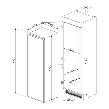 Smeg S8C1721F, 282 l, Ingebouwd, F, 32 dB, SN-T, 5,7 kg/24u