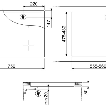 Smeg SI4742D. Kleur van het product: Zwart, Apparaatplaatsing: Ingebouwd, Breedte kookplaat: 75 cm. Sudder brander/kookzone: 1850 W, Normale brander/kookzone: 2300 W, Versterken van sudderpit/kookplaat: 2100 W. Soort bediening: Touch, Controle positie: Boven voorzijde, Type timer: Digitaal. Aangesloten lading (elektrisch): 7400 W, AC-ingangsspanning: 220 – 240 V, AC-ingangsfrequentie: 50/60 Hz. Breedte: 750 mm, Diepte: 515 mm, Hoogte: 56 mm