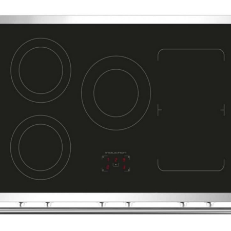 De 5 inductie zones aan de bovenzijde van het fornuis zijn regelbaar met behulp van de knoppen aan de voorzijde. Aan de rechter zijde bevinden zich 2 flex zones welke als 2 aparte maar ook als 1 langwerpige zone gebruikt kunnen worden. Op de kookplaat zelf wordt digitaal de ingestelde stand weergeven. Tevens wordt via een indicatie lampje aangegeven welke zones nog restwarmte hebben.