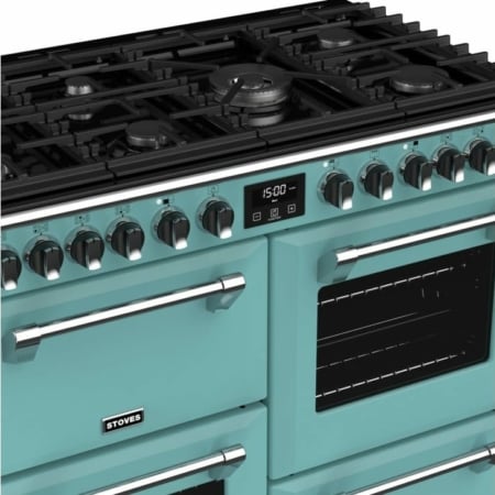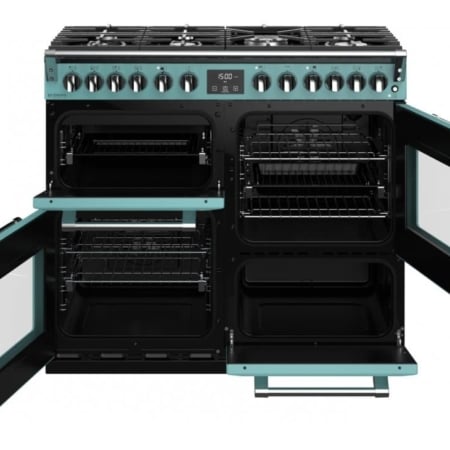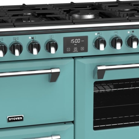 De Stoves Richmond S1000 DF Deluxe Country Blue is een 100 cm. breed design fornuis uitgevoerd in de kleur blauw. Het kookgedeelte bestaat uit 7 gasbranders en heeft een wokbrander van 5,0 kW in het midden. De vangschaal is van hoogwaardig gas-op-glas.
