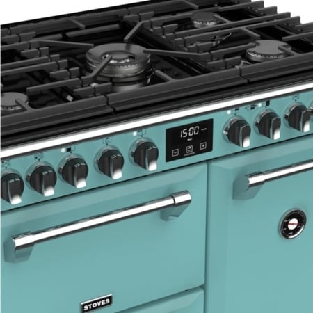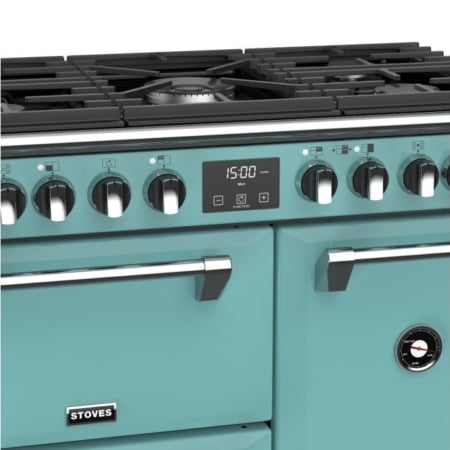 Stoves 444410899. Type product: Range-fornuis, Soort bediening: Draaiknop, Kleurnaam: Country Blue. Type kookplaat: Gaskookplaat, Aantal branders/kookzones: 5 zone(s), Type gas: Natuurlijk gas. Grootte oven: Klein, Voedingsbron oven: Electrisch, Netto capaciteit oven: 31 l. Oven 2 afmetingen: Middelmaat, Oven 2 voedingsbron: Electrisch, Oven 2 positie: Linksonder. Oven 3 grootte: Groot, Oven 3 voedingsbron: Electrisch, Oven 3 positie: Rechts