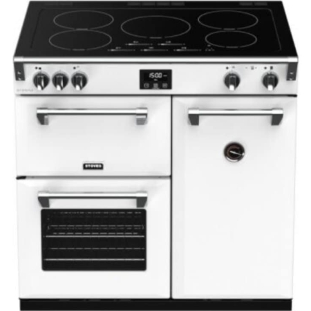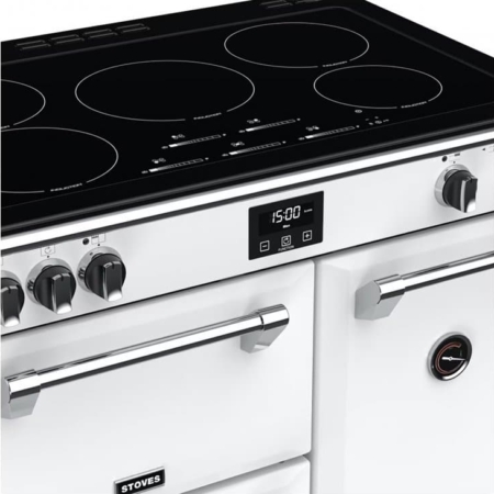 De Stoves Richmond S900 EI Deluxe Icy White is een 90 cm. breed design fornuis uitgevoerd in de kleur ijs wit. Dit fraaie fornuis heeft een landelijke uitstraling en kan zodoende perfect geplaatst worden in de klassieke keuken. Het kookgedeelte heeft vijf inductiezones, die met de PowerBoost-functie tijdelijk in vermogen versterkt kunnen worden. Verder heeft de kookplaat ook voorgeprogrammeerde functies als warm houden of smelten.