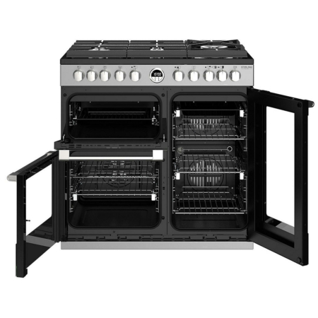 Transformeer uw keuken met het Stoves Sterling Deluxe S900DF fornuis met twee branders. De Sterling Deluxe S900DF Dual Fuel Range Cooker biedt een eigentijds ontwerp en is gebaseerd op 100 jaar technische ervaring.