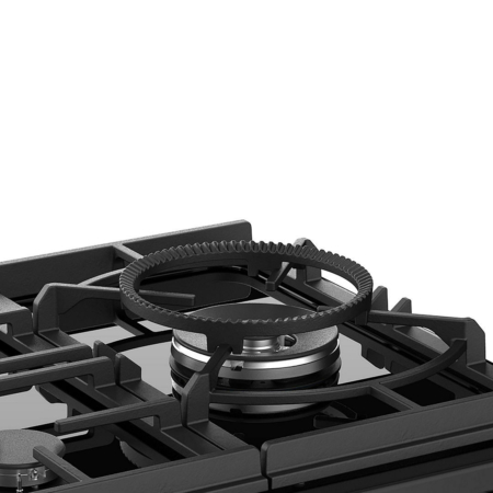 De gas-door-glas kookplaat heeft een gladde keramische glasoppervlakte voor een stijlvolle en elegante uitstraling en biedt toch alle voordelen van koken op gas. De kookplaat heeft 5 branders, waaronder een 5.0 kW dubbele PowerWok Plus-brander en is uitgerust met een wokhouder en een grote gietijzeren bakplaat. Verhoogde gietijzeren Pan Glide pansteunen maken de kookplaat compleet en laten pannen met gemak en stabiliteit over de bovenkant van het fornuis glijden.