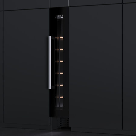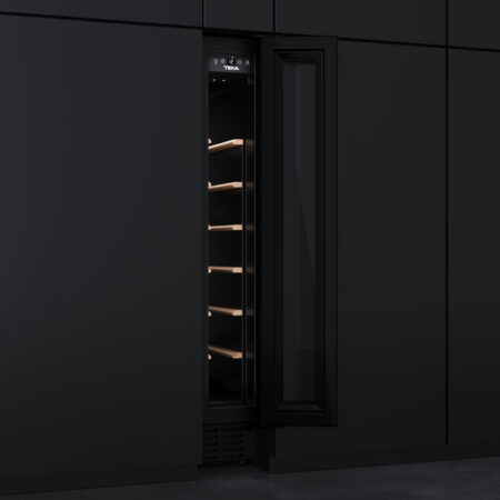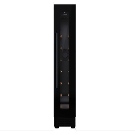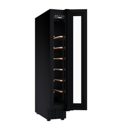 Teka RVU 10008 GBK. Apparaatplaatsing: Ingebouwd, Kleur behuizing: Zwart, Inwendige kleur: Zwart. Flessen-capaciteit: 8 fles(sen), Type product: Thermo-elektrische wijnkoeler, Klimaatklasse: N-ST. Energie-efficiëntieklasse: G, Jaarlijks energieverbruik: 133 kWu, Energie-efficiëntieschaal: A tot G. Locatie van display: Op de deur, Soort lamp: LED. Breedte: 145 mm, Diepte: 549 mm, Hoogte: 820 mm