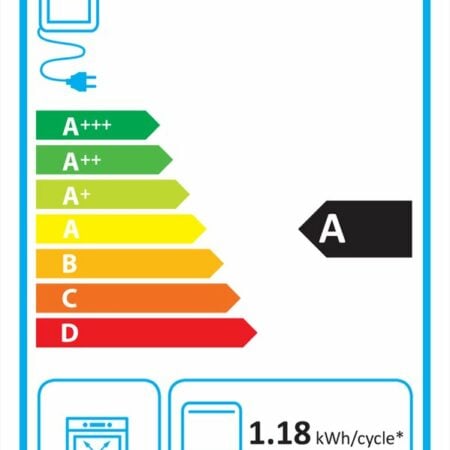 Energieverbruik per cyclus en ovenruimte in hetelucht-modus: 0,85 kWh/cyclus